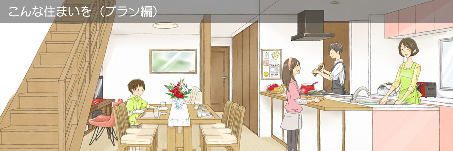サンプルとしてはまだまだ数は多くありませんが、例えばこんな住まいはどうでしょうというプランをご紹介します。