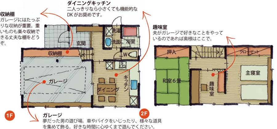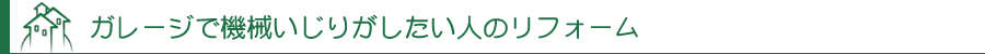 趣味部屋としてのガレージは男のロマン。 車をいじったり、バイクの手入れをしたりする方々にとっては、まさに夢のようなスペースです。さらに車やバイクにあまり興味がないという男性にとっても、ガレージという広く何でもできそうなスペースがあれば、無趣味な方でもいつのまにかこだわりの趣味のひとつや二つは始めてしまうかも知れません。 そう考えると「ガレージング」というガレージを使った趣味部屋へのリフォームは、仕事に一区切りつけた男性諸君への ご褒美リフォームともいえるのかも。 旦那ばかりが喜ぶリフォームなんて・・・と、奥様方からの苦情が聞こえてきそうですが、そこはそれ、グータラと一日中ゴロゴロされている上に、やれ昼ごはんはまだかとか、ビールは、つまみは、などとあれこれうるさく言われることを考えると、何かに没頭してくれる方がまだましなのかも知れませんよ。 旦那さんがガレージで自分の世界に浸っている隙に、奥様はお友達とのんびりコミュニケーションなんていかがです?1泊や2泊の旅行だって気軽に行けるようになるかもしれません。 とにかく、男性は何か自分の好きなことが見つかると寝食を忘れて没頭する方が多いものです。奥様が自分たちの自由な時間を満喫するためにも、旦那さん用のガレージリフォームをお考えになってはいかがでしょうか。