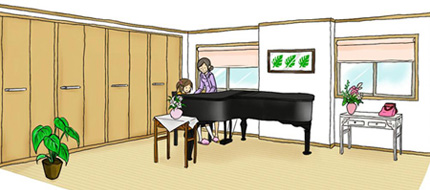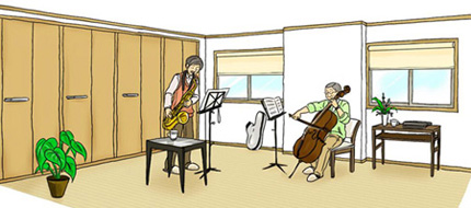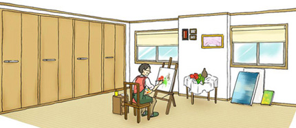 趣味である絵や書道を楽しんだり、楽器を演奏したり、ゴルフの練習をしたり。女性ならフラダンスの練習をしたり日本舞踊の練習をしたりできる空間です。